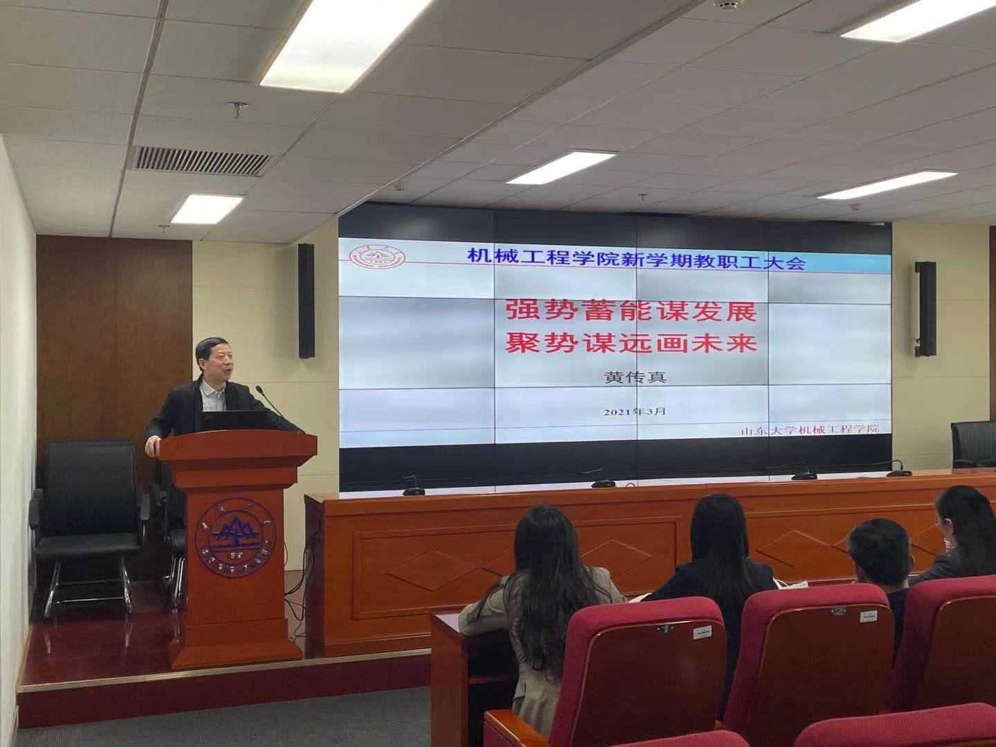 3月11日下午,yl23455永利官网召开全院教职工大会,传达学校2021年春季学期工作会议精神,对学院新学期工作和党史学习教育进行了全面部署。院长黄传真、党委书记刘杰出席会议并讲话。
