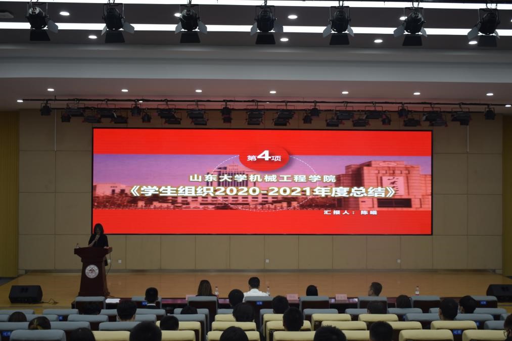 yl23455永利官网38届学生会主席陈曦对第一次学生代表大会代表资格做了审查报告,并汇报了2020-2021年度学生会工作情况。她从学生组织总体建设情况、学生组织活动开展情况、“建党百年砥砺奋进,百廿山大精彩有约”系列活动、积极开展校院联动、院院联动四方面进行了汇报。