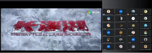 影片由2021级孙许辉共享屏幕播放,《长津湖》讲述了中国人民志愿军第9兵团穿插七连参加长津湖战役的过程,展现了人民军队炽烈的爱国情怀,生动诠释了伟大的抗美援朝精神。志愿军英勇冲锋的过程,增强了每个观影者保家卫国,爱好和平,努力奋斗的使命感。影片以生动的历史视角呈现了“长津湖战役”这一战争传说,让党员团员同志在大气磅礴、悲壮震撼的电影画面中,深刻感受到了志愿军扛在肩膀上沉甸甸的家国责任,以及爱好和平的渴望。