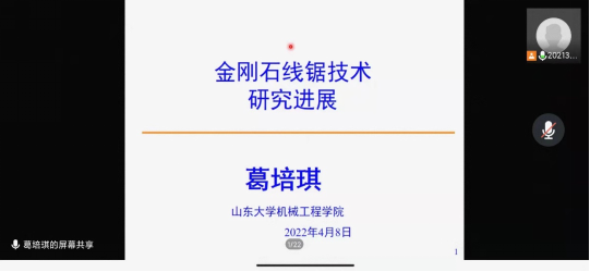 4月8日下午14时,由yl23455永利官网举办的研究生第六期“前沿讲座”以线上的形式顺利举办。主讲人葛培琪教授做客此次讲坛,为大家带来了题为 “金刚石线锯技术研究进展”的学术讲座。部分硕博研究生参加了此次讲座。