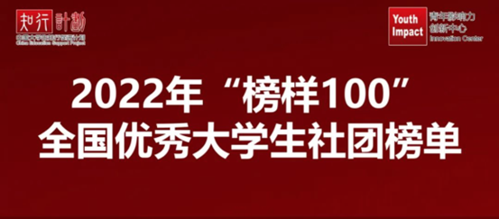 知行计划全称中国大学生社会实践知行促进计划,是由团中央学校部组织发起的大学生社会实践支持促进项目,2014年正式启动。“榜样100”全国优秀大学生社团榜单由知行计划、青年影响力创新中心、校园行动派联合发布,自2019年起每年发布一次,旨在鼓励和表彰始终活跃在乡村振兴、助学支教、专业赛事、环境保护、创新创业等各式青年行动一线的高校大学生社团、团队、个人。