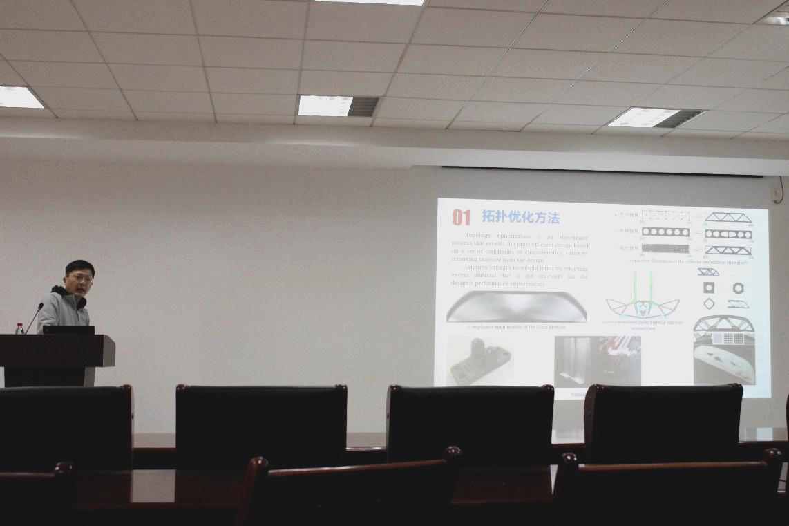 本次讲座围绕计算机设计与结构拓扑优化方向展开,刘继凯首先介绍了拓扑优化方法是什么,有什么作用,并通过典型案例进行说明,接着介绍了结构计算的重要性,继而引出拓扑优化在结构和工艺优化中的作用,然后着眼于增减材制造中的仿真与优化,介绍面向增减材复合制造的结构拓扑优化算法,最后对拓扑优化的发展进行了展望。讲座最后,刘继凯老师细心回答了现场同学提出的问题,耐心地为同学们答疑解惑,此次讲座的氛围让大家感受到了机械学子对学术的热爱和老师们严谨治学的风范。