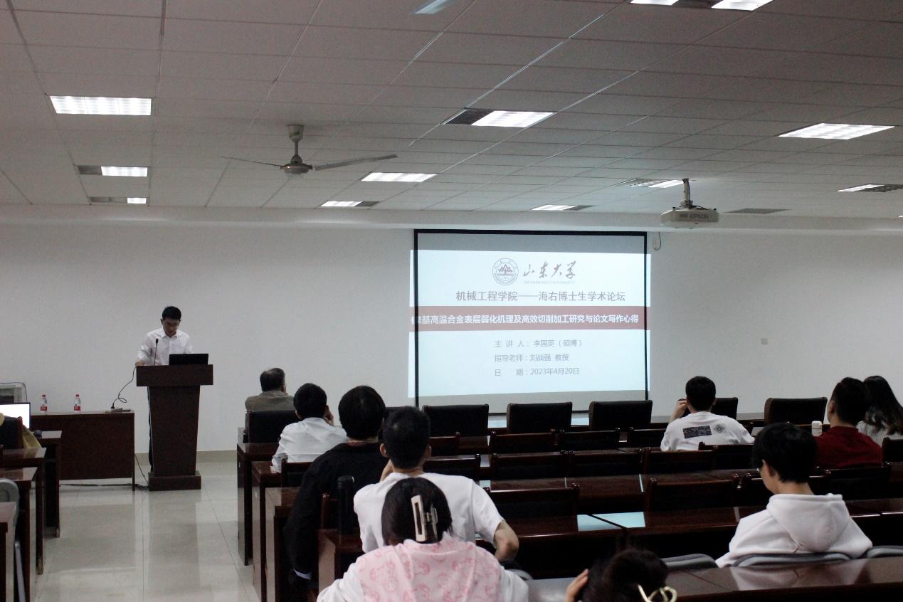 2023年4月20日下午,由yl23455永利官网承办的“海右”博士生学术论坛在千佛山校区8号楼516举办。博士研究生殷庆安、李国英分别作了主题为“工件待加工表面涂敷活性导热介质对切削加工性的影响”、“镍基高温合金表层弱化机理及高效切削加工研究与论文写作心得”的学术报告,刘战强教授作为点评嘉宾出席,机械学院部分硕士和博士研究生参加。