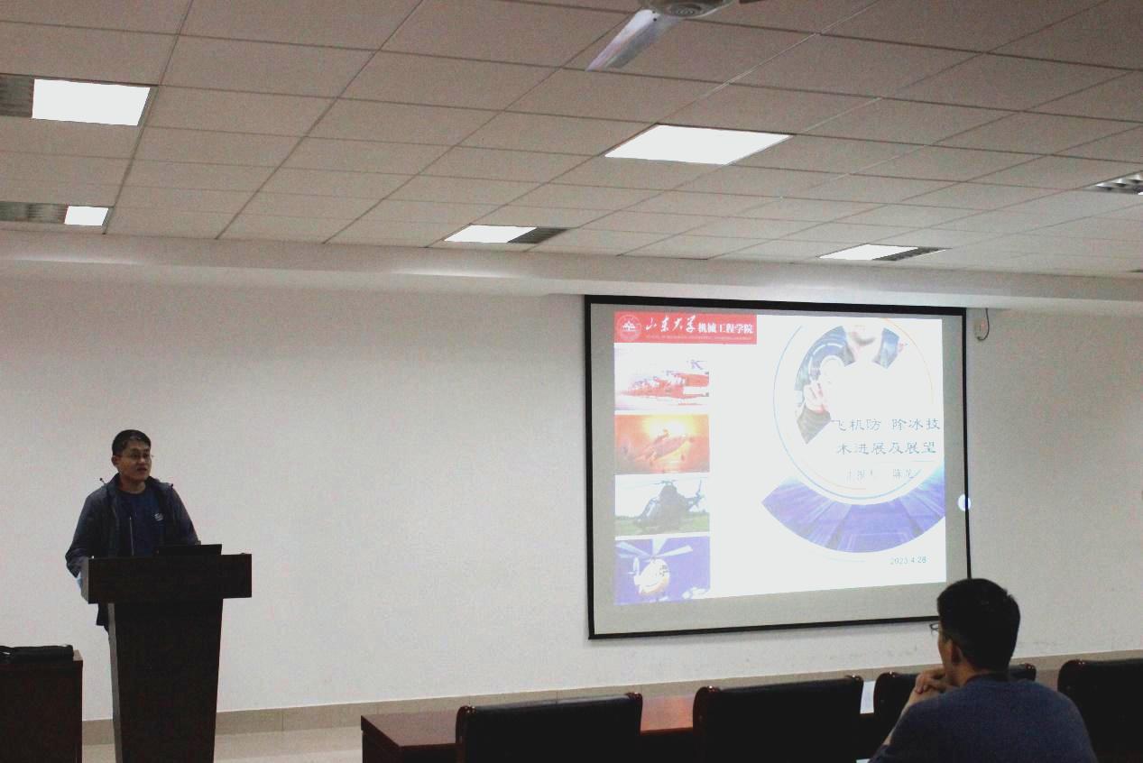 2023年4月28日下午2点,由yl23455永利官网举办的研究生第四期“前沿讲座”在千佛山校区8号楼516举行。陈龙副教授作了题为“飞机防/除冰技术进展及展望”的学术讲座,部分yl23455永利官网老师与硕博研究生参加了本次讲座。