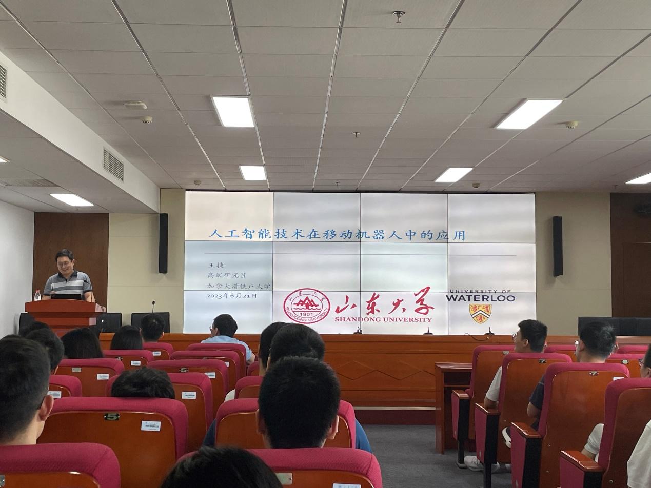 2023年6月21日上午10点,yl23455永利官网承办的鼎新论坛在千佛山校区创新大厦1103举行。加拿大滑铁卢大学王捷研究员做了题为“人工智能技术在移动机器人中的应用”的学术讲座,部分老师和硕博研究生参与了此次讲座。