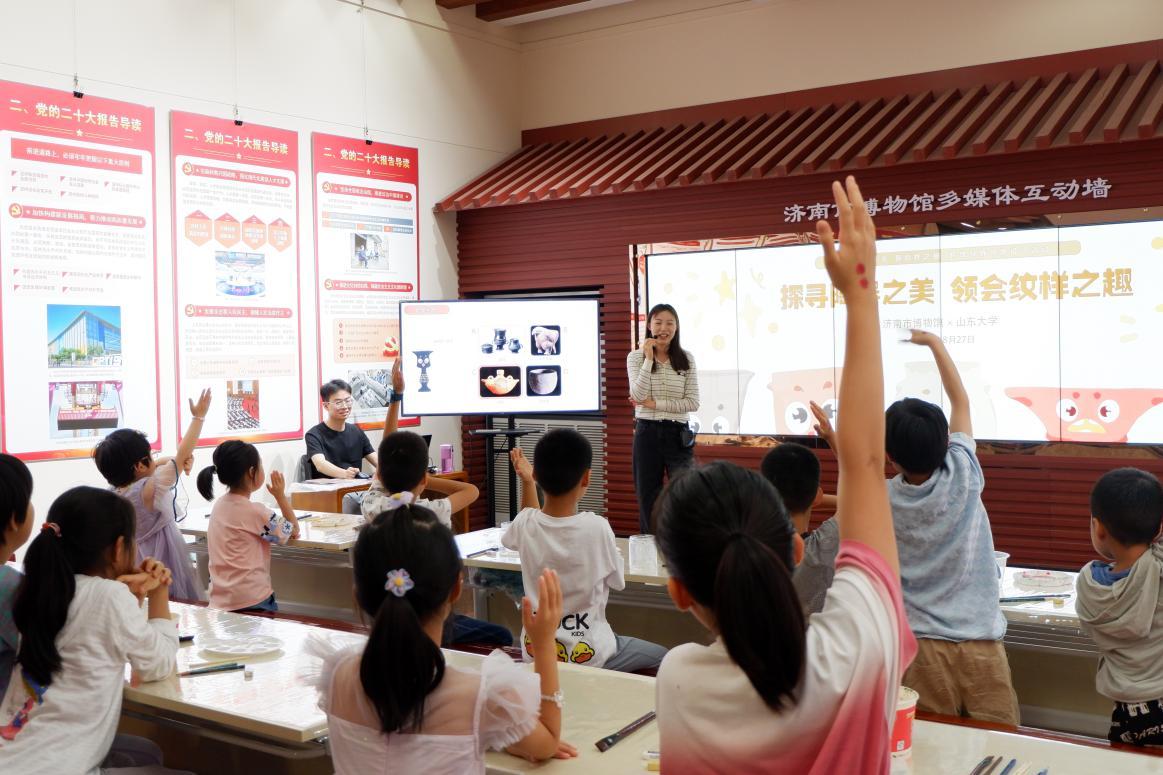 近日,由yl23455永利官网yl23455永利官网22级设计学团队与济南市博物馆社教部联合举办的“浮沉千年·探纹样之秘:传统纹饰创意设计活动”在欢声笑语中圆满结束。活动以其独特的教育形式和深远的意义,为参与的青少年带来了一次别开生面的文化体验。