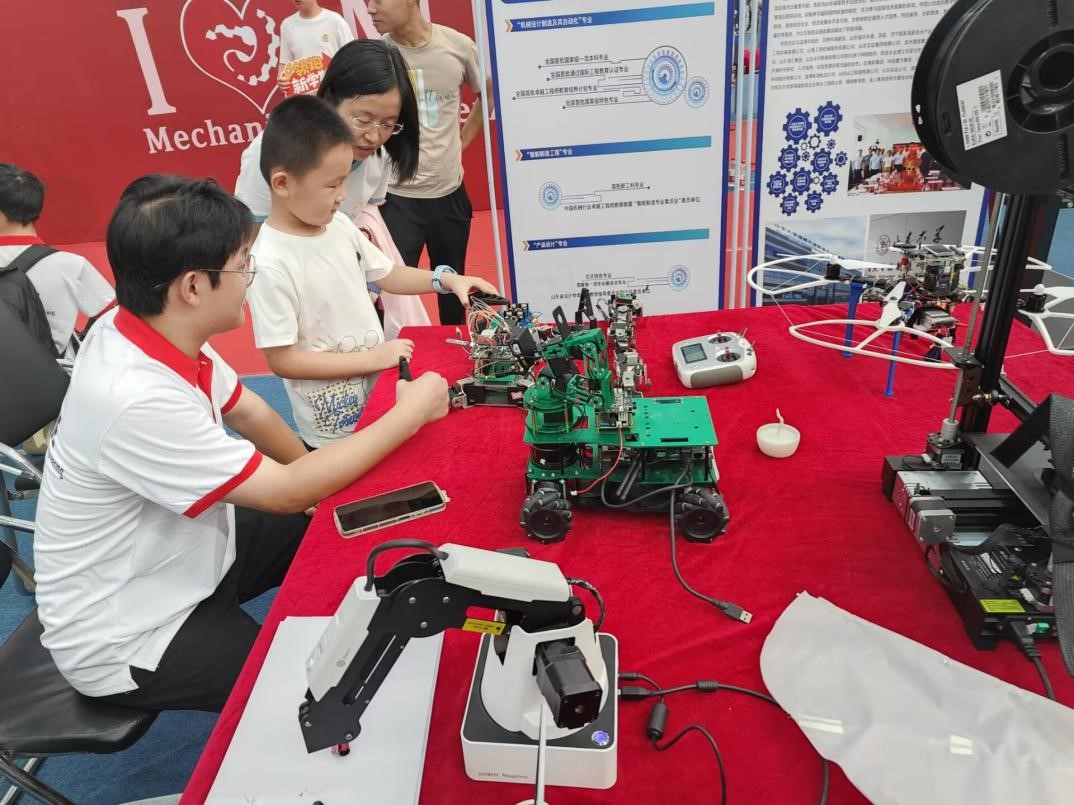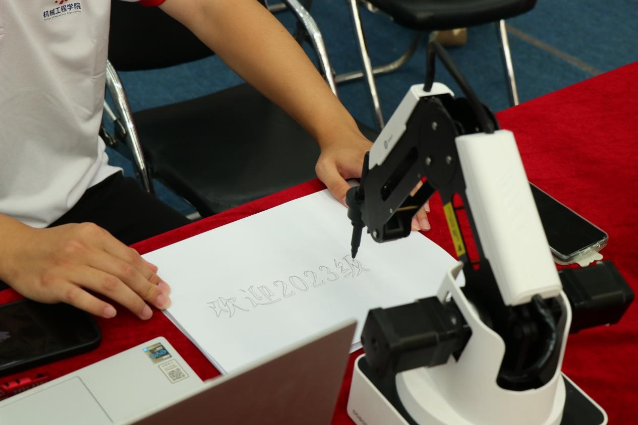 大国重器,艾兴精神薪火传。为激发青年学子科创兴趣,在建设科技强国中谱写青春之歌,yl23455永利官网精心布置了科技展区,由志愿者讲解演示历届优秀科创作品。“六足机器人”通过机器视觉画面回传,可自主完成颜色识别、目标追踪、自动避障、语音识别等功能; “变胞机器人”配备摄像头、触觉传感器、光电传感器、语音模块,具有多变的形态和灵活的运动;“魔术师机械臂”通过python编程,可在纸上写下迎新话语,与同学们互动。同时,新生们可在观影席上观看学院宣传片,了解yl23455永利官网的前世今生,机械专业在建设科技强国中的重要地位和艾兴院士的传奇故事,进一步增加新生对机械学科的兴趣。
